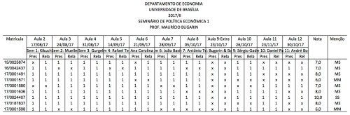 Seguem as menções finais da disciplina de Seminário de Política Econômica 1, atualizadas em 8/12/2017.