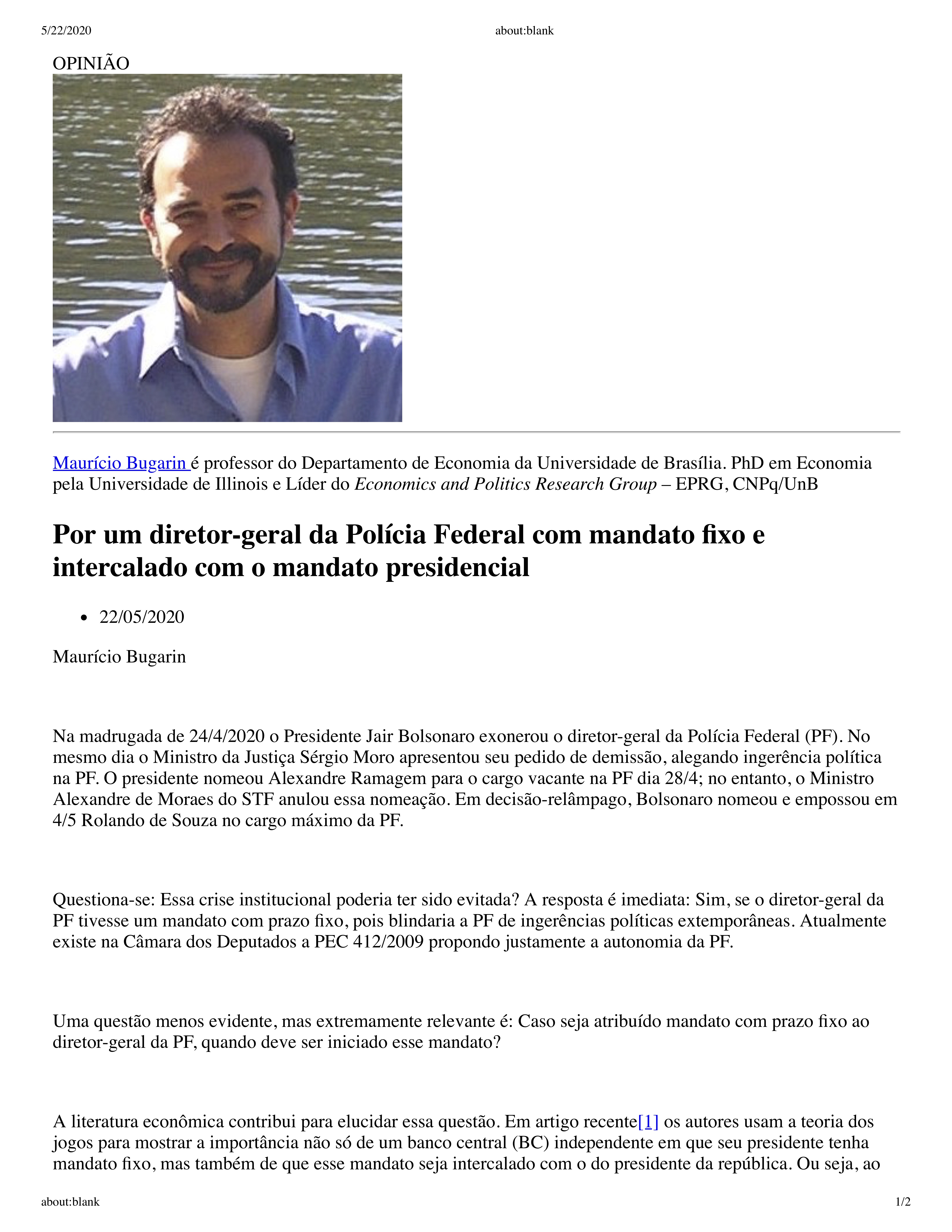 O ensaio intitulado “Por um diretor-geral da Polícia Federal com mandato fixo e intercalado com o mandato presidencial” foi publicado hoje no Portal da Universidade de Brasília.